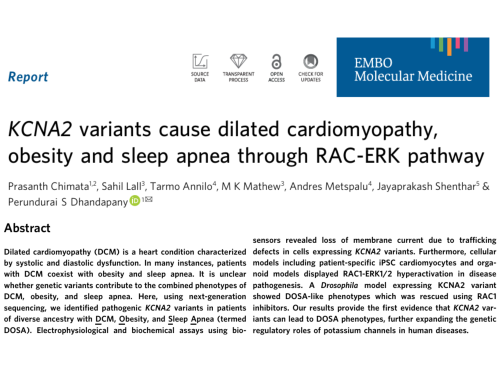 KCNA2 variants cause dilated cardiomyopathy, obesity and sleep apnea through RAC-ERK pathway